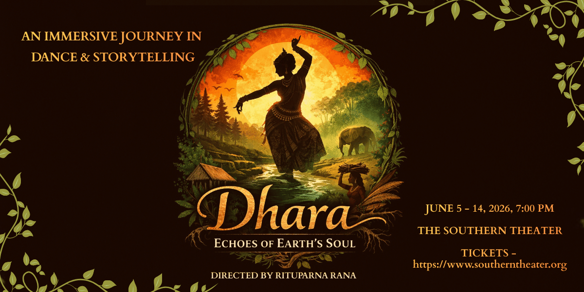 Dhara: Echoes of Earth’s Soul is an interdisciplinary dance production by Rituparna Rana, presented through the Southern Theater’s 2026 Performance Partnership Program. Rooted in Indian classical movement vocabularies, the work integrates multimedia storytelling, global soundscapes, and visual design to explore environmental justice through South Asian and diasporic perspectives. Drawing from narratives of land, migration, and marginalized communities, Dharaunfolds as a transformative, embodied journey -inviting audiences to reflect on their relationship with nature, home, and ecological futures.